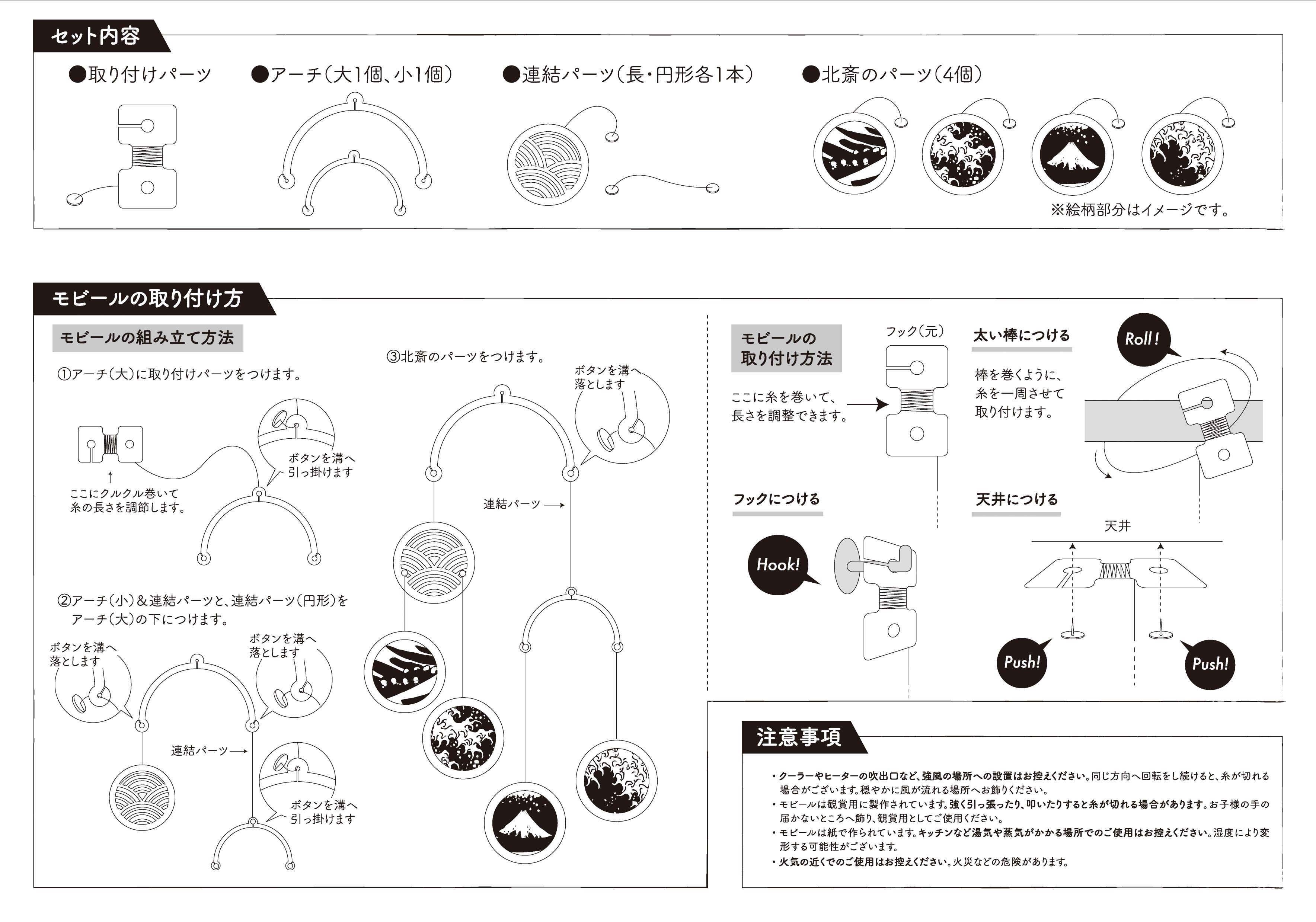 ・モビールは大部分が紙でできております。キッチンなど湯気や蒸気がかかる場所でのご使用はお控えください。湿度により変形する可能性がございます。