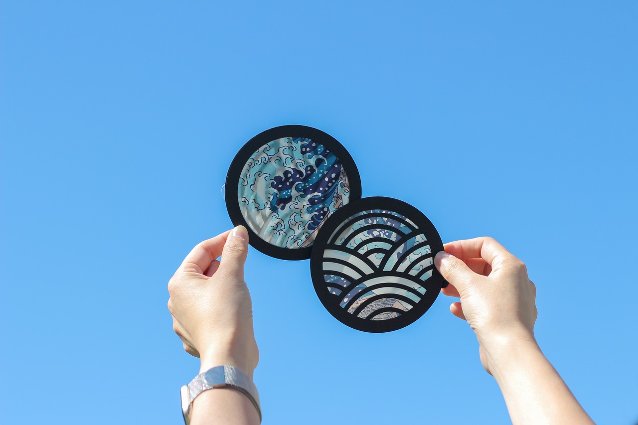 紙とプラスチックフィルムの異素材を組み合わせた軽やかな構造で、北斎の「神奈川沖浪裏」の一部分をデザインに取り入れました。